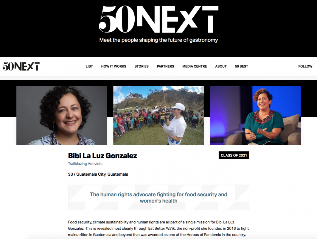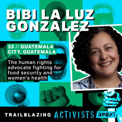 Dentro de esta lista, se encuentra la guatemalteca Bibi la Luz González, de 33 años, fundadora de la organización Come Mejor Wa’ik, en la categoría Activistas Pioneras (Trailblazing Activists), representando como única a la región centroamericana y entre las siete de América Latina (y 8 incluyendo el Caribe).