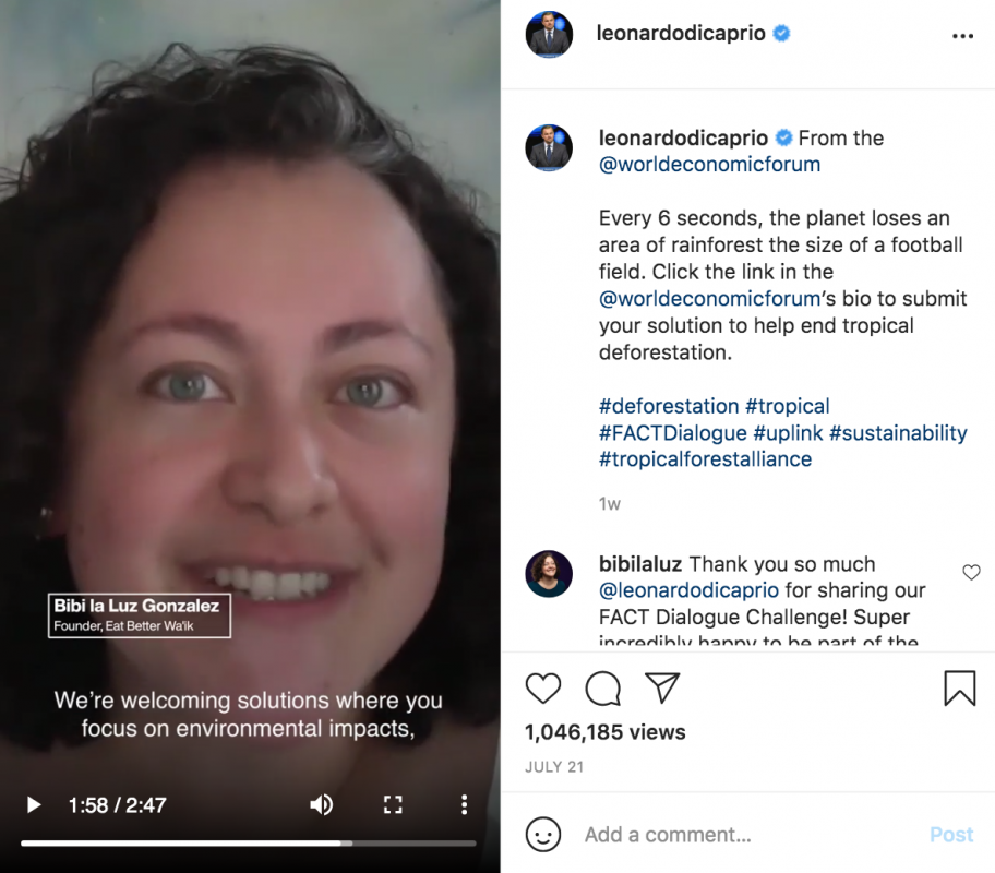 Y ¿por qué es importante que nos involucremos con los árboles? «Comenzamos por que más de 1,600 millones de personas dependen de ellos. Brindan agua, apoyan la biodiversidad, guardan carbon (CO2), y producen bienes como: aceite de palma, cacao, pulpa de papel. Pero con poblaciones que aumentan, se necesitan más bienes, y hay más consumidores. Nuestros bosques están siendo destruidos, para incrementar la producción de carne, soya, y más de forma insostenible. Ahora estamos juntos para desarrollar ideas par que los bienes sean producidos sin destruir los bosques (deforestar), y así nuestra tierra sigue siendo productiva, nuestros bienes se convierten en bienes sostenibles, y nuestros bosques continúan a protegernos y al planeta contra el cambio climático, y nunca más tengamos que destruir nuestros bosques. Únete a nuestra acción colectiva con empresas, gobiernos, agricultures y comunidades, únete a la conversación y a la soluciones». Traducción al español del video abajo.