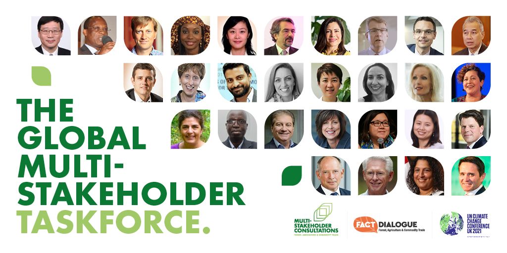 El Diálogo FACT (por sus siglas en inglés Food, Agriculture and Commodity Trade), reúne temáticas de alimentos, agricultura y comercio de commodities, liderado por la Tropical Forest Alliance (TFA dentro del Foro Económico Mundial) y la Presidencia de COP por parte del Gobierno de Gran Bretaña en preparación para la Conferencia de las Naciones Unidas sobre el Cambio Climático – COP26 a llevarse a cabo en Glasgow en noviembre. Esta busca que los gobiernos aceleren sus transición hacia un uso de tierra más sostenible, en especial la cero-deforestación para la producción de alimentos.